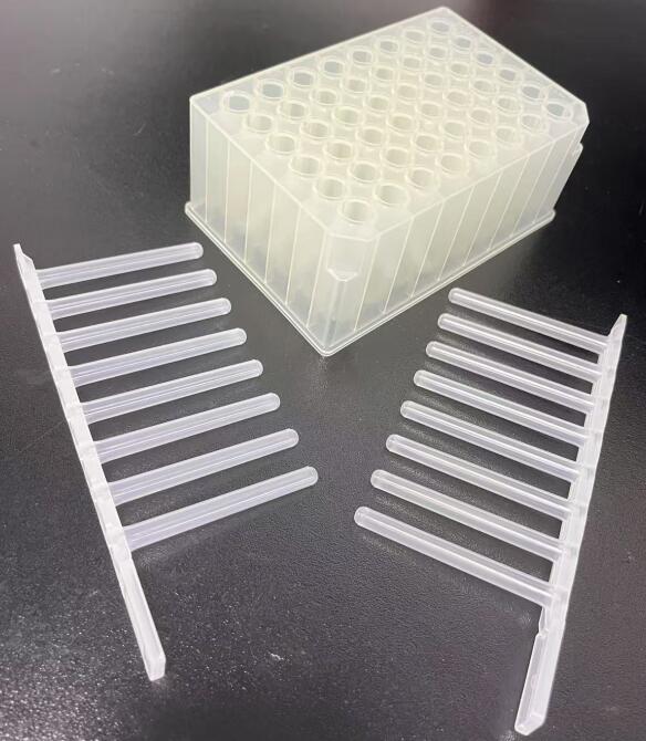 | 利用实验舱磁棒架上的磁棒,将吸附有核酸的磁珠移动至不同的试剂孔内,再利用套在磁棒外层的磁棒套,反复地快速拍打液体,使液体与磁珠均匀的混和,经过核酸裂解释放、核酸与磁珠吸附、杂质清洗与洗脱等过程,最终得到高纯度核酸。 | |